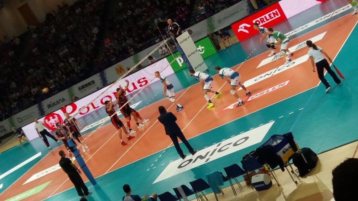 Siatkarki na meczu Plus Ligi Politechnika W-wa - Resovia Rzeszów